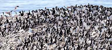 PARTY ANIMALS: The common murre is a social seabird. After spending winter apart at sea, males and females rendezvous each spring to breed and raise chicks in densely packed colonies.